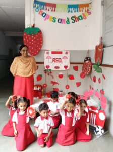 The Shapes and Shades Corner is a vibrant space dedicated to showcasing a weekly display of various shapes and colour shades explored by our preschoolers. This interactive corner features engaging and visually appealing materials that allow young learners to observe, explore, and reinforce their understanding of concepts in a playful and creative manner.